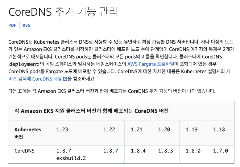 https://docs.aws.amazon.com/ko_kr/eks/latest/userguide/managing-coredns.html