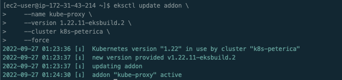 2022-09-27 01:33:21 [ℹ] new version provided v1.11.3-eksbuild.1