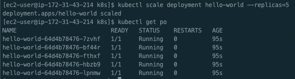 kubectl scale deployment hello-world --replicas=5
