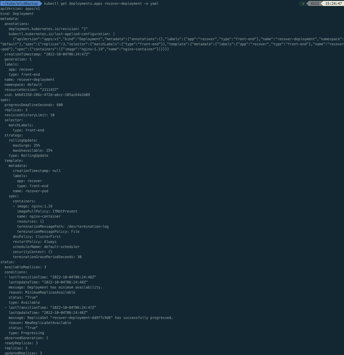 kubectl get deployments.apps recover-deployment -o yaml >> backUp.yaml