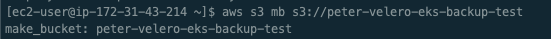 $ aws s3 mb s3://peter-velero-eks-backup-test