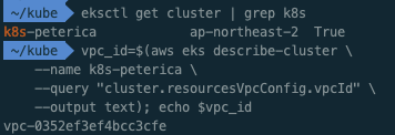 vpc_id=$(aws eks describe-cluster \