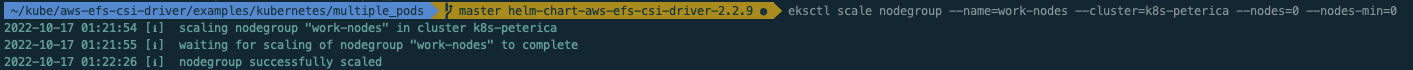 eksctl scale nodegroup --name=work-nodes --cluster=k8s-peterica --nodes=0 --nodes-min=0