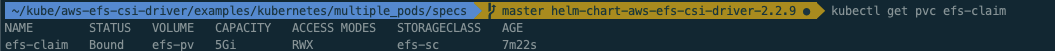 $ helm upgrade -i aws-efs-csi-driver aws-efs-csi-driver/aws-efs-csi-driver \