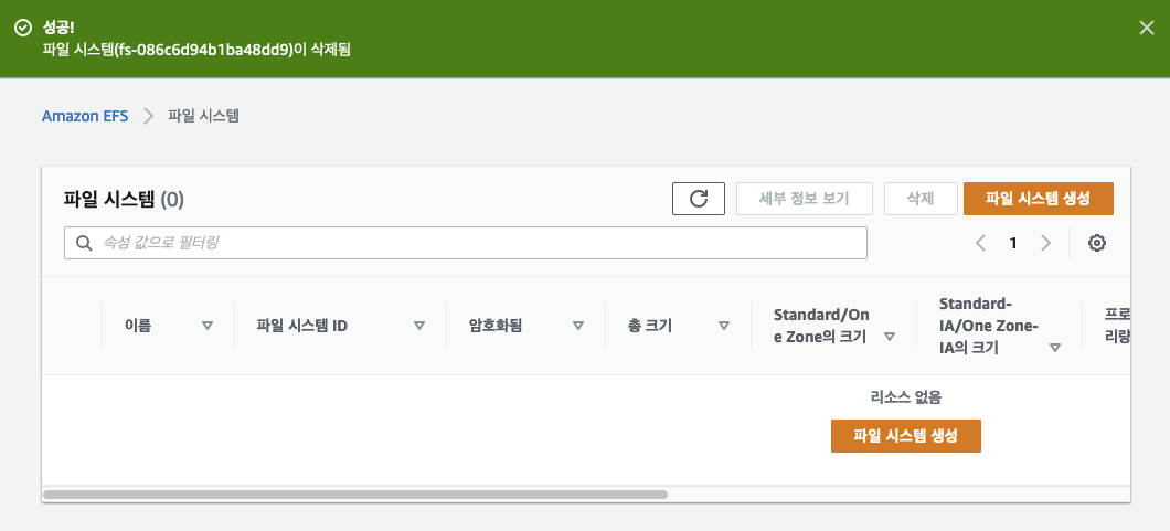 ㅇ EFS는 콘솔에서 삭제처리 하였다.