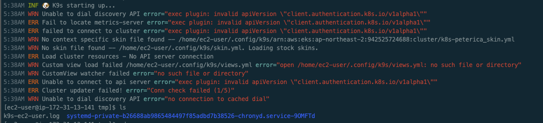 [kubernetes] ec2, k9s 설치 트러블슈팅, k9s exec plugin: invalid apiVersion "client.authentication.k8s.io/v1alpha1" 본문