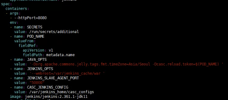 ㅇ kubernetes 환경에서 deploy를 수정하여 jvm option을 추가하였다.
