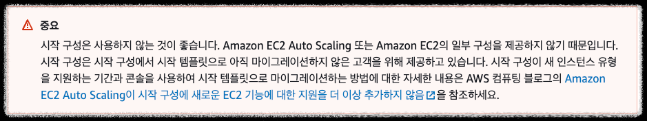 ㅇ EC2 > 시작 구성 페이지 진입 시 현재(22.12.23) 사용 중지를 권장하고 있다.