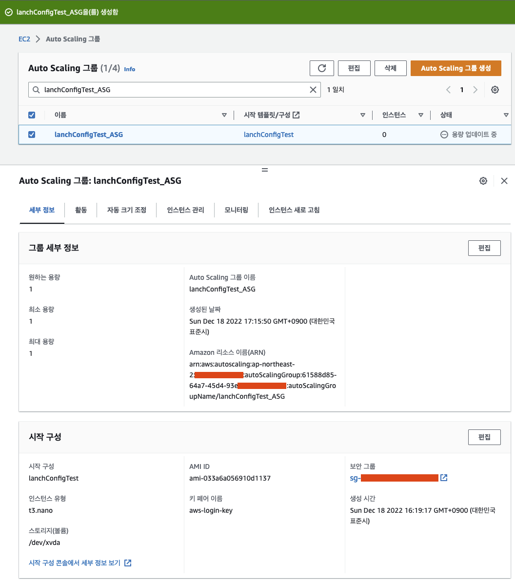 ㅇ lanchConfigTest_ASG를 생성하였다.