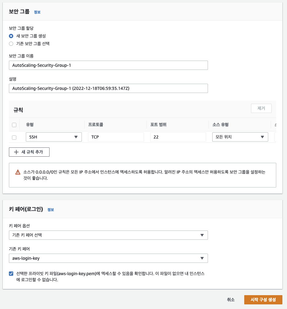 [AWS EC2 AutoScaling] 시작구성 생성, AutoScalingGroup 생성 본문