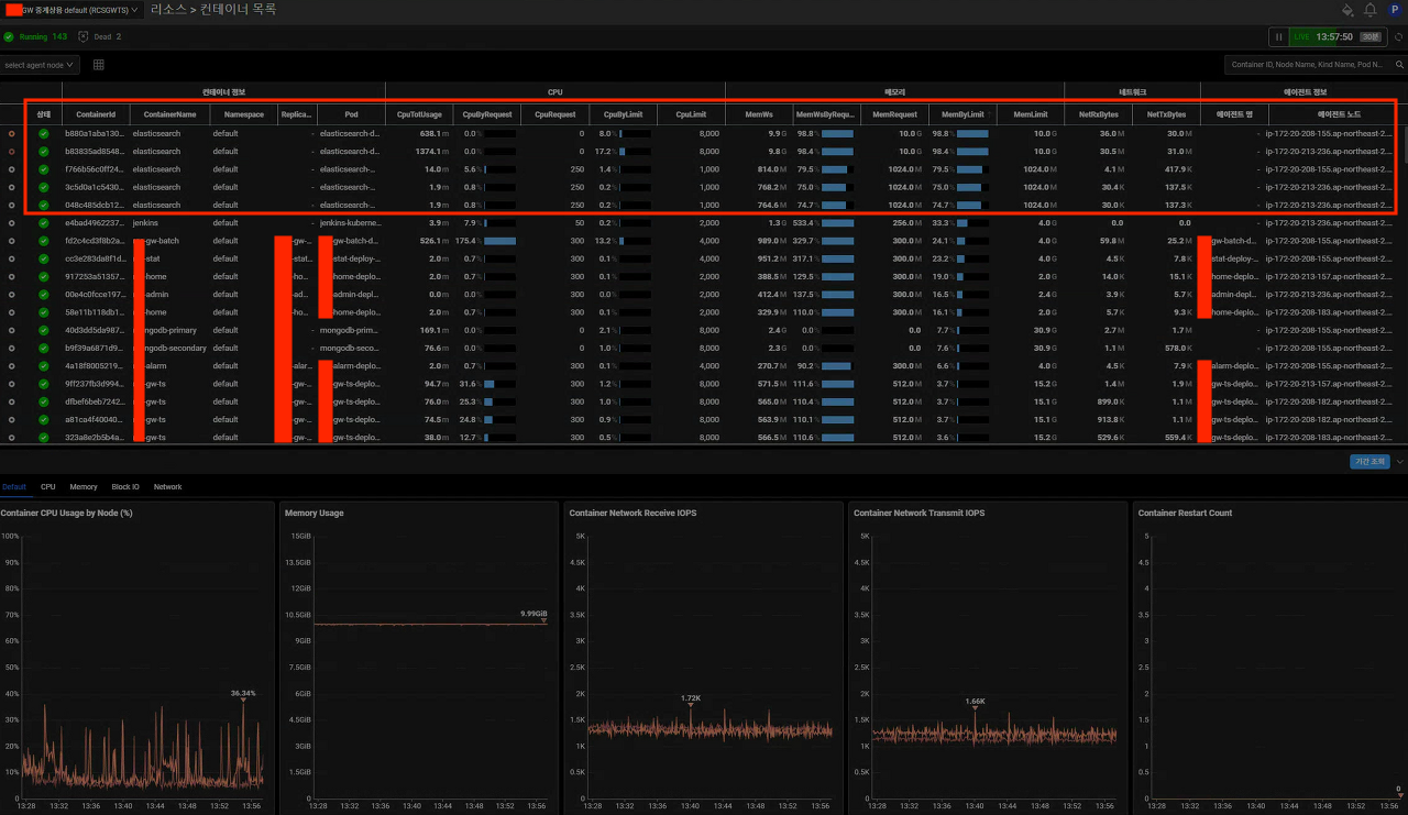 ㅇ whatap에서 수집된 컨테이너 리소스 정보이다.
