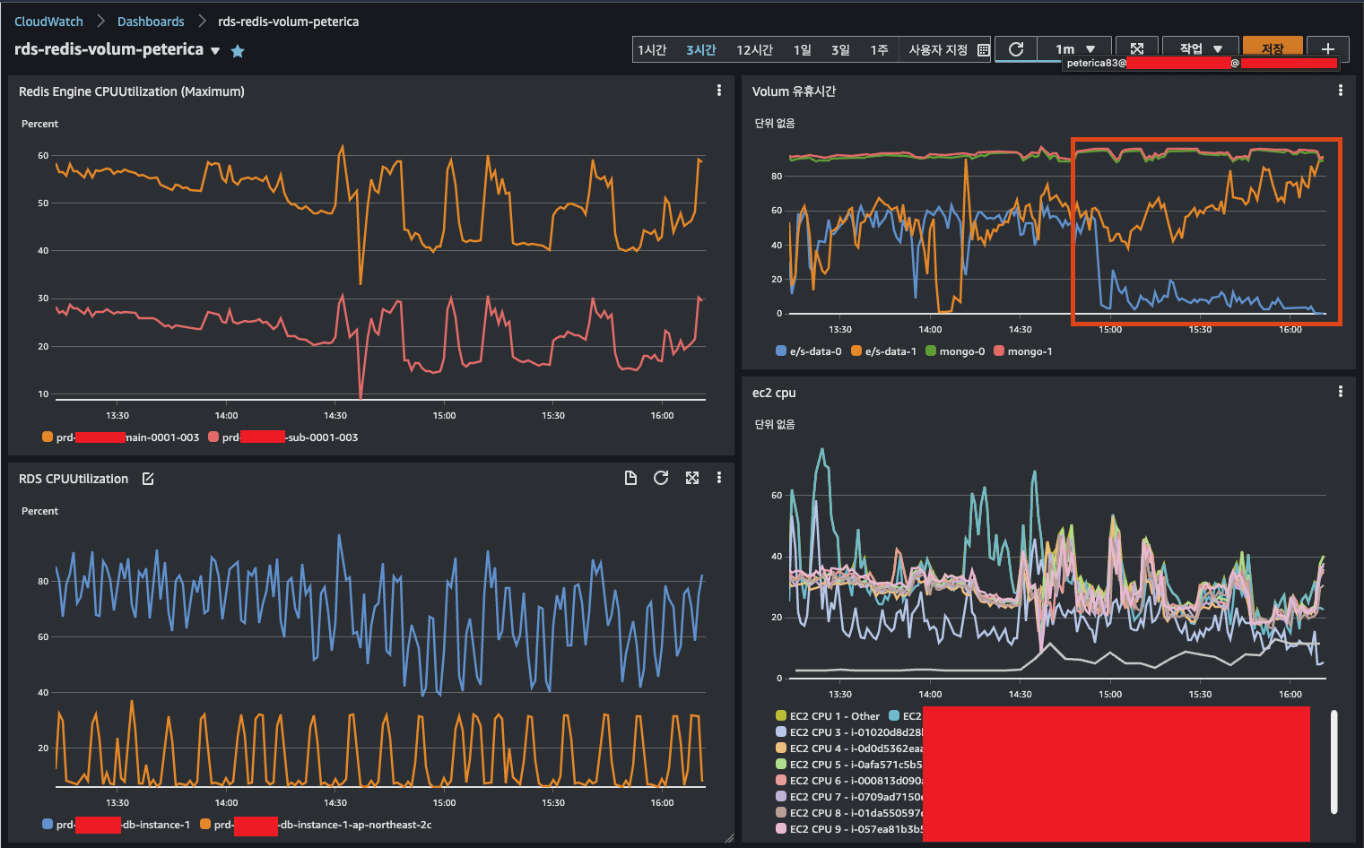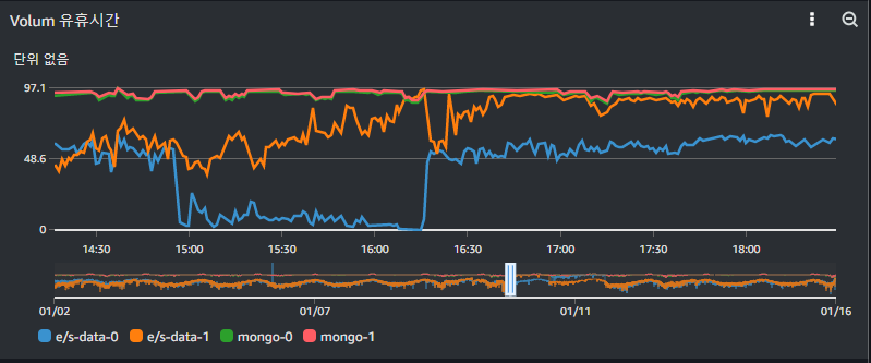 ㅇ CloudWatch 볼륨 지표상에서 Elasticsearch Data Node 볼륨의 병목현상이 발견됨.