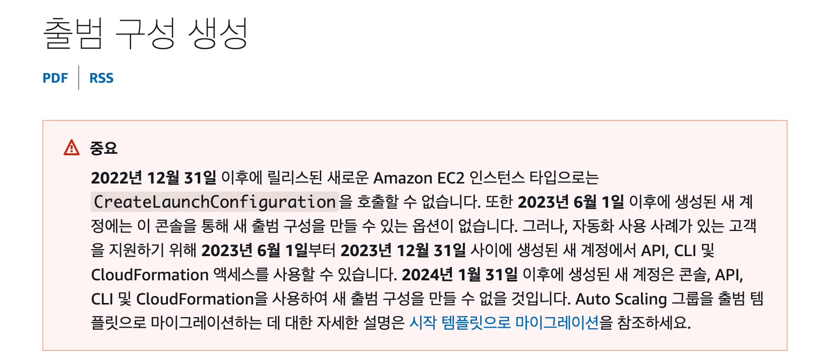 ㅇ AWS 정책 변경으로 시작 템플릿으로 변경작업 수행해야했음.