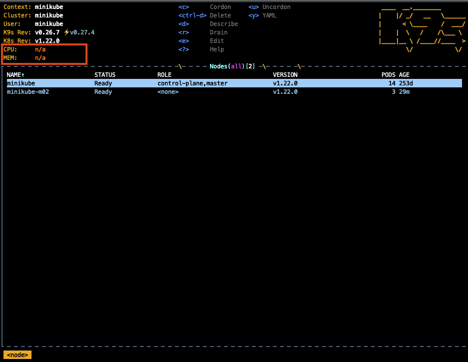 ㅇ k9s에서 CPU와 MEM 상태가 n/a가 아닌 퍼센트로 표시된다면 성공한 것이다.