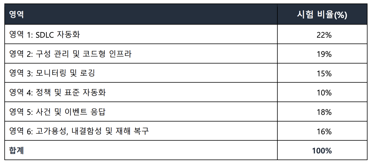 ㅇ 시험의 영역과 영역별 콘텐츠를 확인 할 수 있다.