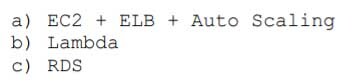- 한 달에 한 번 운영 팀과 만나 지난달 데이터를 검토합니다. 회의 중에 3주 전에 AWS 외부에서 HTTP를 통해 ping하는 모니터링 시스템이 3계층 웹 서비스 API에서 지연 시간이 크게 급증했음을 기록했습니다. 데이터베이스 계층에는 DynamoDB를, 비즈니스 로직 계층에는 ELB, EBS 및 EC2를, 프레젠테이션 계층에는 SQS, ELB 및 EC2를 사용합니다.