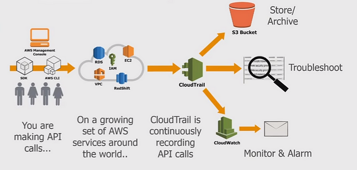 - CloudTrail은 AWS 계정에서 API 활동을 기록하는 웹 서비스입니다.