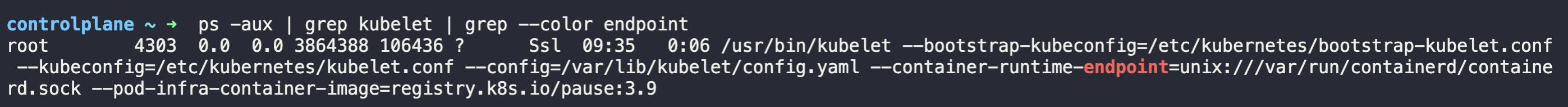 controlplane ~ ➜ ps -aux | grep kubelet | grep --color endpoint