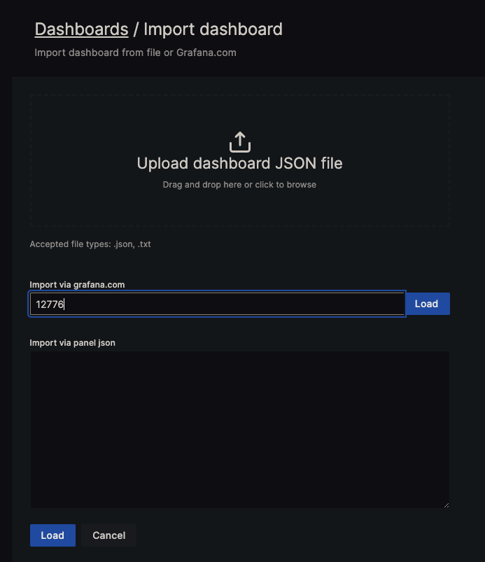 ㅇ Dashboard를 생성하는 과정에는 직접적인 방법과 dashboard를 import하는 방법이 있다.