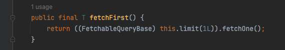 ㅇ fetchFirst는 내부적으로 limit(1)을 걸고 있다.