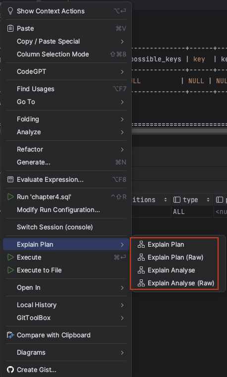 Explain Plan(Raw)의 경우 EXPLAIN FORMAT=TRADITIONAL에 해당한다.