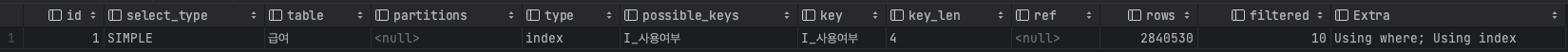 ㅇ 결국 use_yn 인덱스를 사용하지 않고 전체 데이터를 스캔한다.(p183)