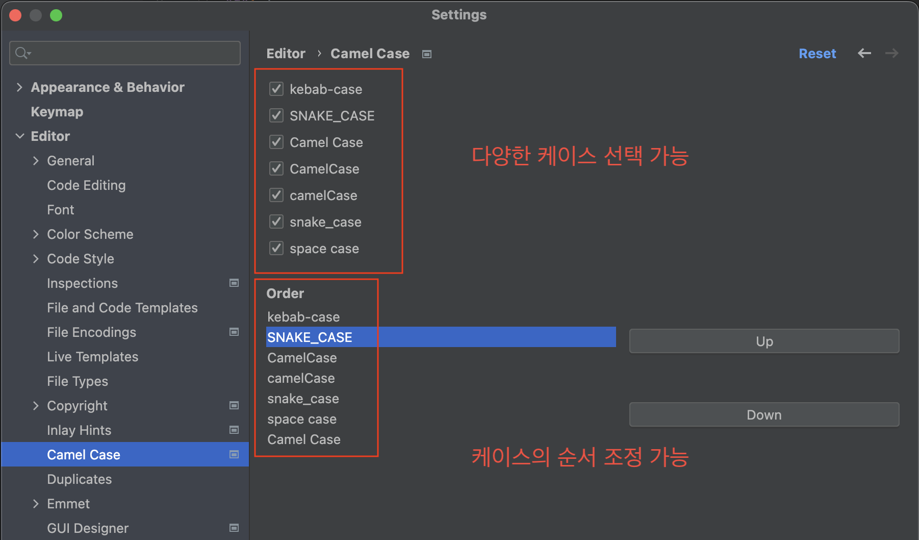 ㅇ Settings > Plugins > Marketplace에서 camelcase를 검색하여 설치하였다.
