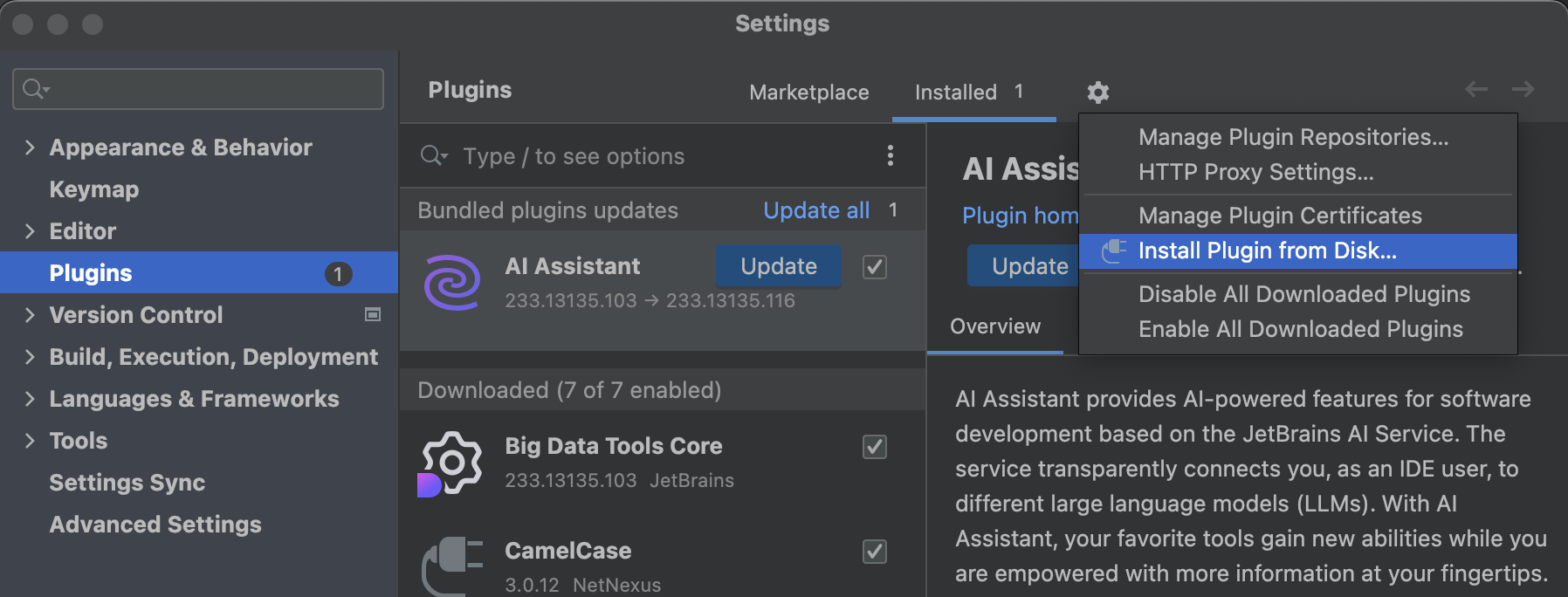ㅇ Install Plugin from Disk를 선택하고, 플러그인 jar를 선택하면 설치가 된다.