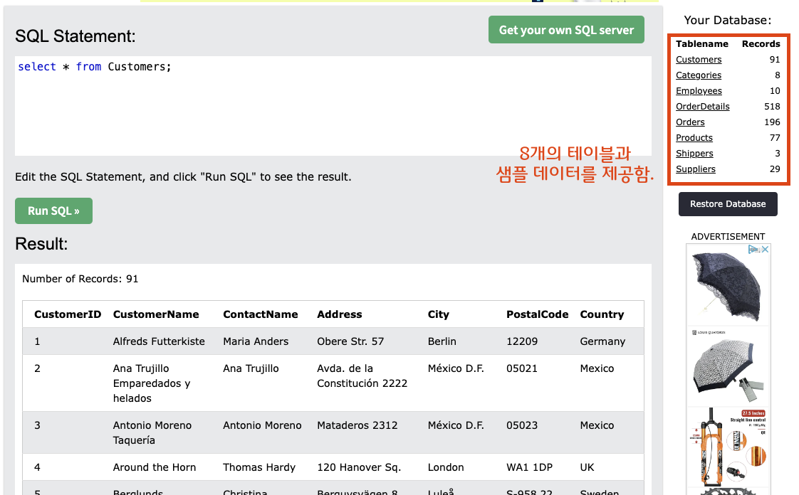 ㅇ URL: https://www.w3schools.com/sql/trysql.asp?filename=trysql_select_all