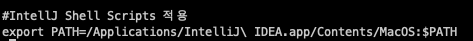 echo '#IntellJ Shell Scripts 적용' >> ~/.zshrc