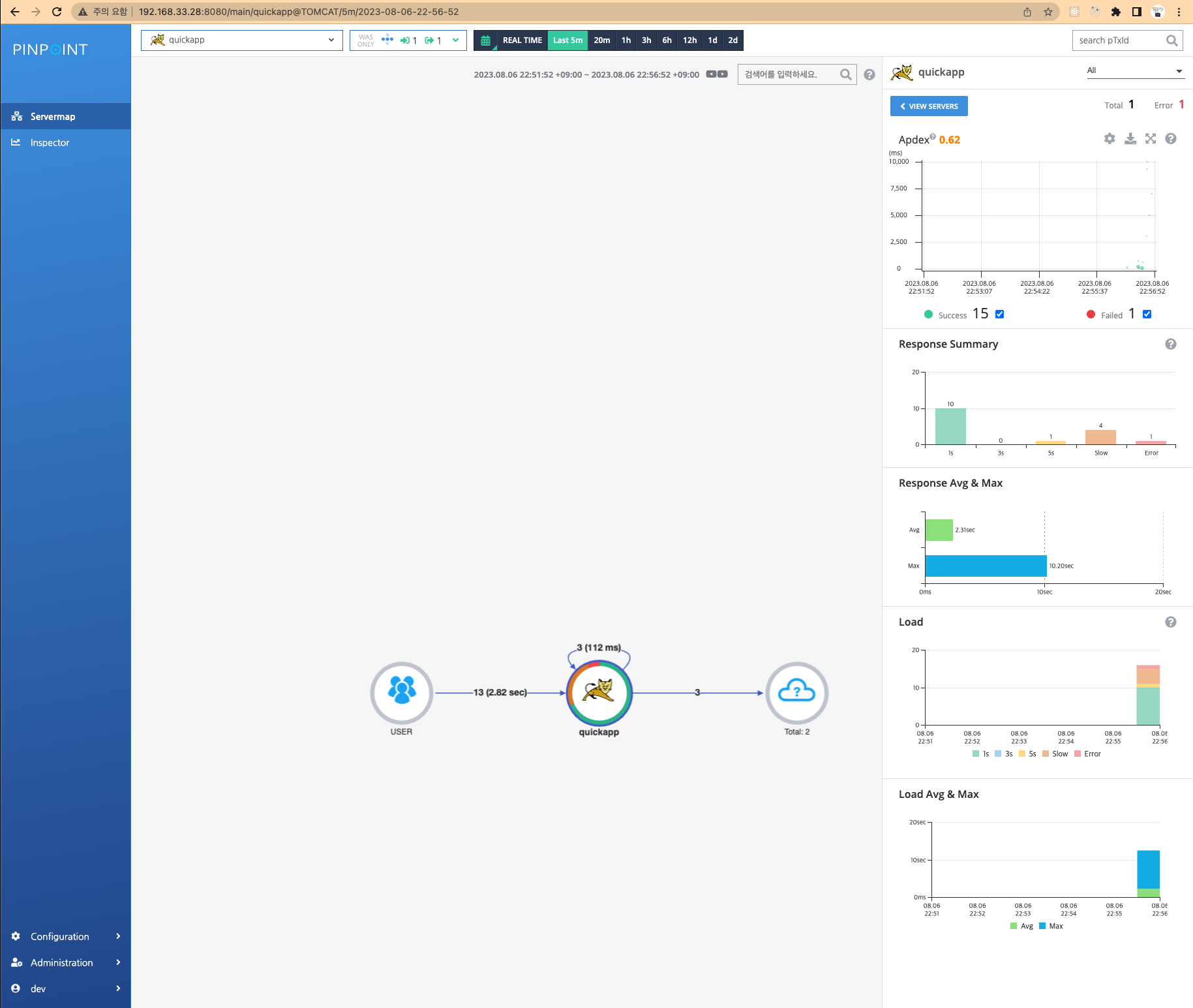 ㅇ {host}:8080로 접속하여 Pinpoint web에 접속하였다.