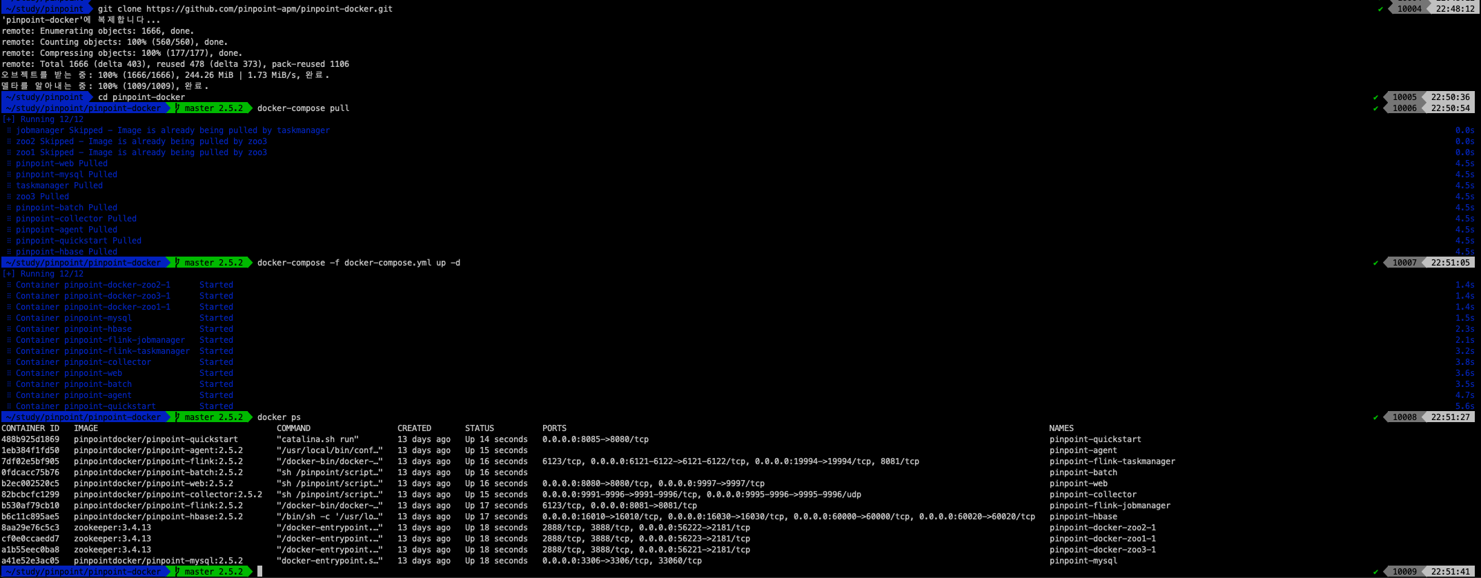 $ git clone https://github.com/pinpoint-apm/pinpoint-docker.git