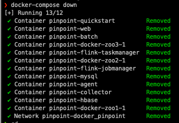 ㅇ pinpoint-docker 위치에서 down 명령어를 실행한다.