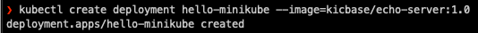 $ kubectl create deployment hello-minikube --image=kicbase/echo-server:1.0