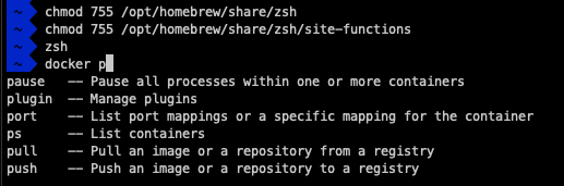 [Docker] 자동완성 설정하기(zsh, MacOS), Insecure completion-dependent directories detected 해결 본문