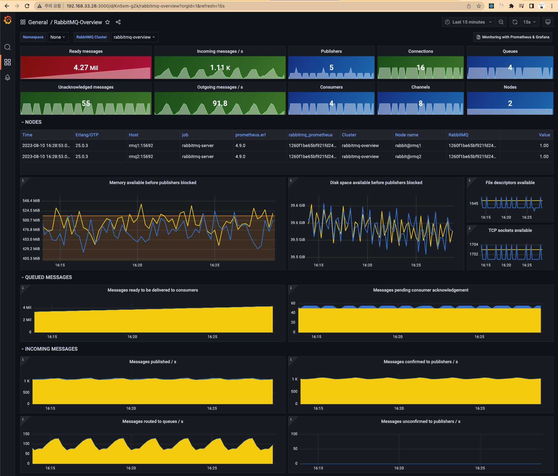 [RabbitMQ] Prometheus 및 Grafana로 RabbitMQ 모니터링 구축 본문