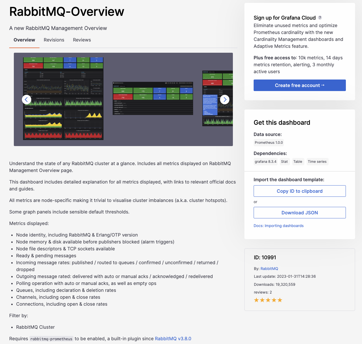 ㅇ GrafanaLabs, RabbitMQ-Overview 설명