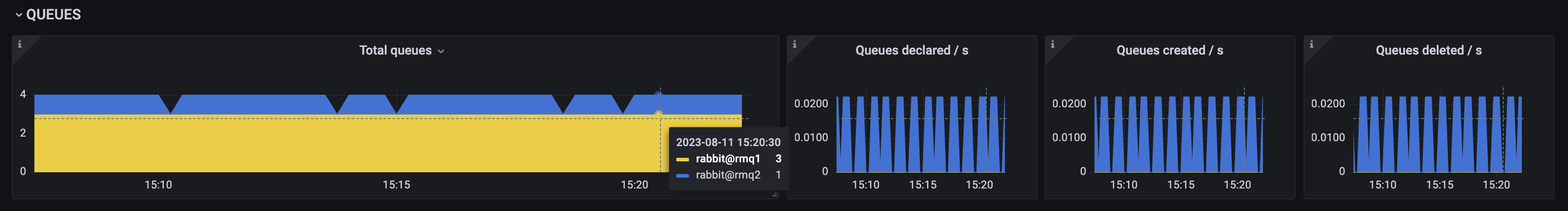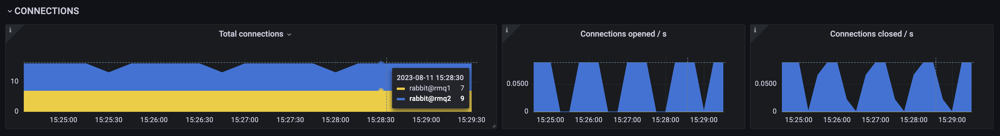 ㅇ RabbitMQ-Overview에서는 RabbitMQ의 건강성 지표, RabbitMQ 노드 및 메시지 속도, Connection 등을 확인할 수 있습니다.