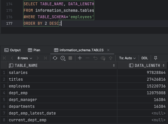 WHERE TABLE_SCHEMA='employees'
