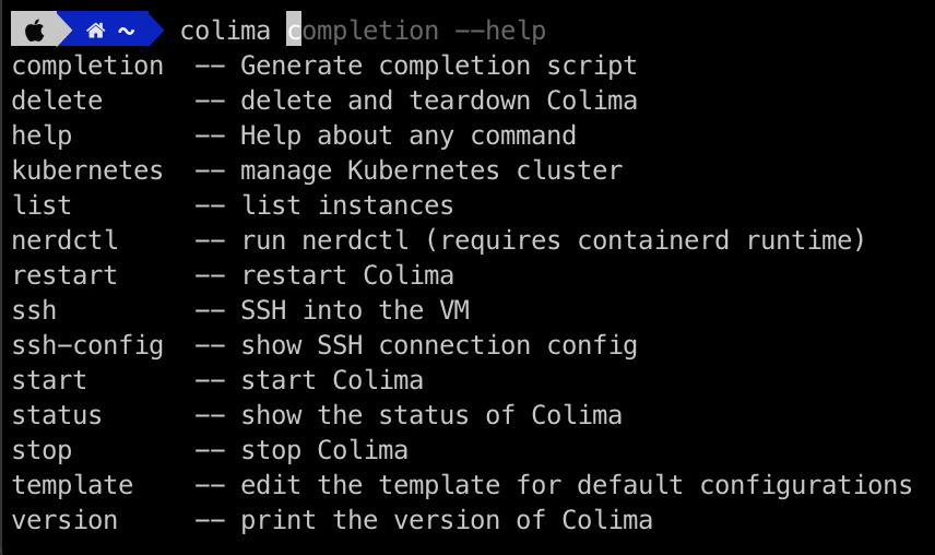ㅇ 지속적으로 Colima 자동완성 기능을 사용할 수 있도록 zsh에 설정을 하였습니다.
