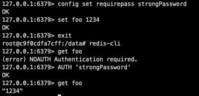 127.0.0.1:6379> config set requirepass strongPassword
