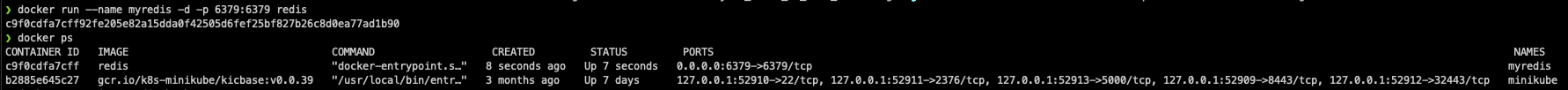 $ docker run --name myredis -d -p 6379:6379 redis