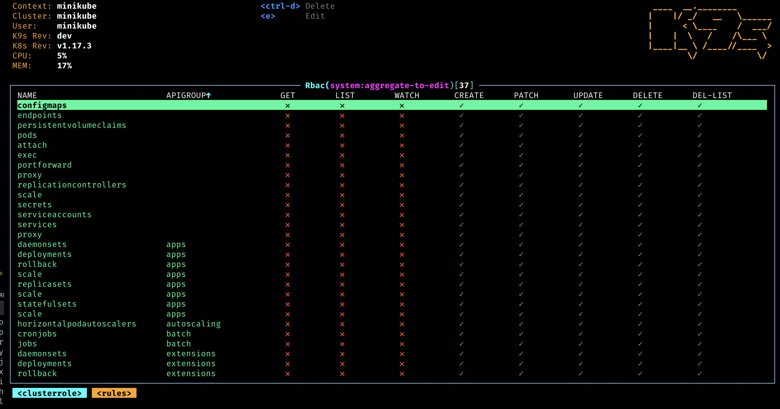 - 클러스터/역할 및 관련 바인딩과 같은 RBAC 규칙 보기를 지원합니다.