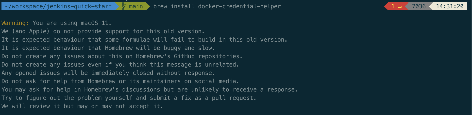 ㅇ docker-credential-helper을 설치하네 m1의 OS가 너무 오래되었다고 안내가 뜨네요.
