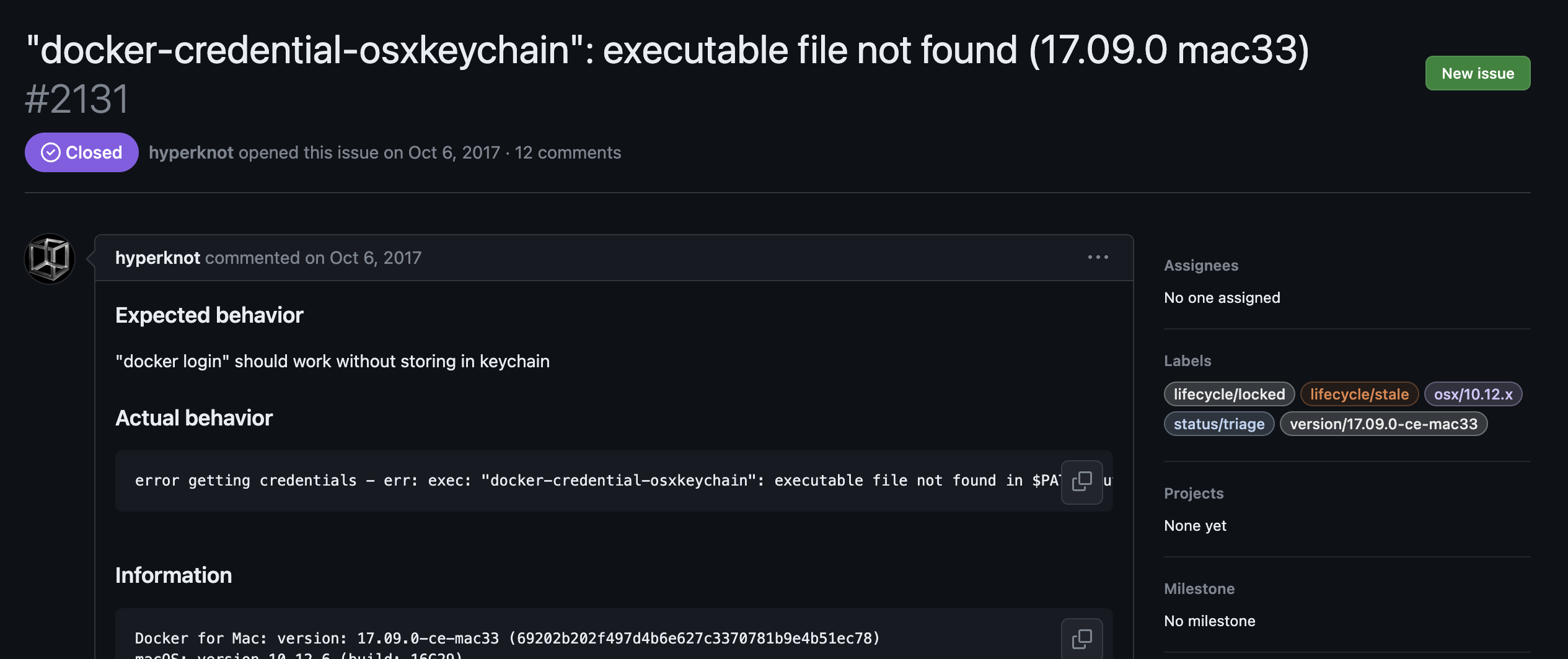 error getting credentials - err: exit status 1, out: `error getting credentials - err: exec: "docker-credential-osxkeychain": executable file not found in $PATH, out: ```