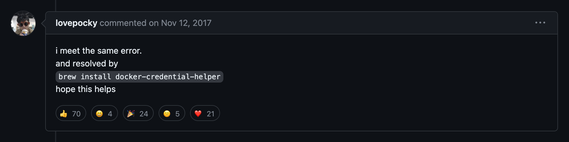 ㅇ brew를 통해 docker-credential-helper를 설치하여 해결했다고 합니다.