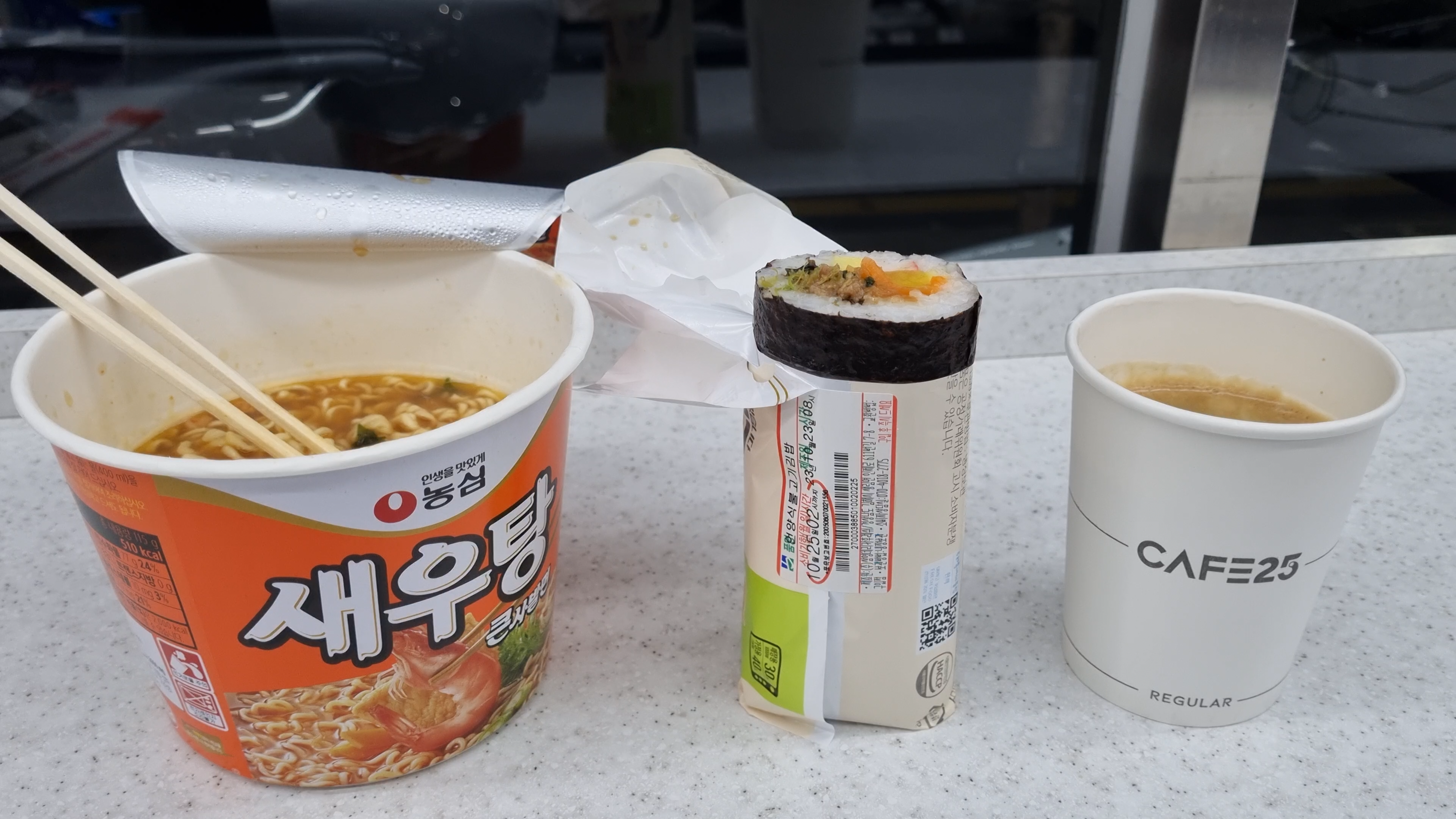 ㅇ 새우탕, 김밥, 커피 이렇게 먹었더니 5300원이 나왔어요.