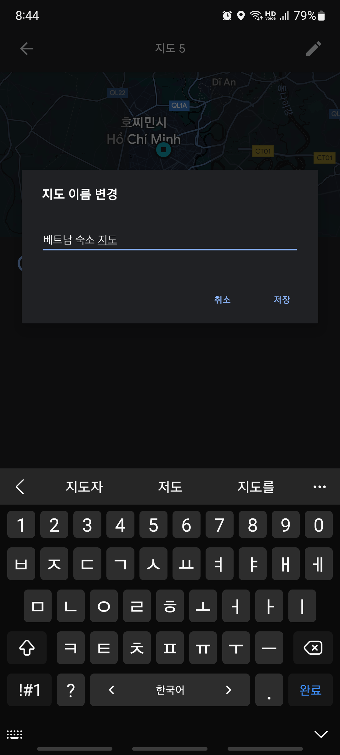ㅇ 어떤 지도인지 알기 위해 이름을 베트남 숙소 지도로 변경하였다.