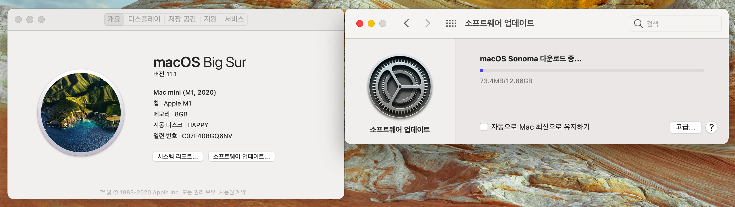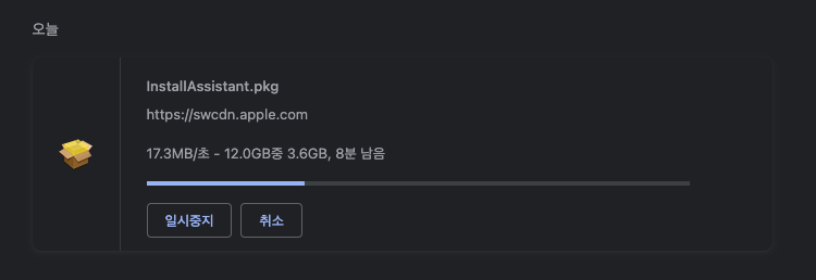 ㅇ 위는 macOS Sonoma 다운로드 중인 상태이다.