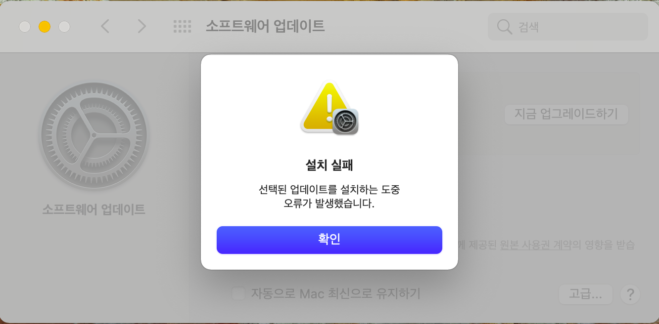 MacOS를 업그레이드 하는 과정에서 설치 실패가 지속적으로 발생하였다. 수차례 재시도를 하였지만, macOS Sonoma 다운로드 중 실패가 발생하여 이를 해결하는 과정을 정리하였다.